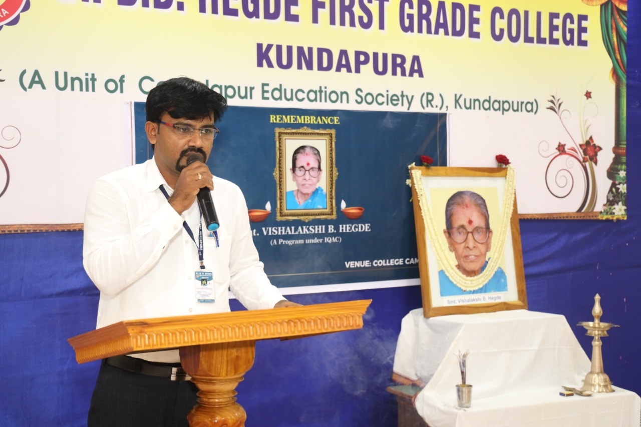 ಡಾಕ್ಟರ್ ಬಸ್ರೂರು ಭುಜಂಗ ಹೆಗ್ಡೆಯವರ ನೆನಪಿನಲ್ಲಿ; ಬಿ.ಬಿ ಹೆಗ್ಡೆ ಕಾಲೇಜನ್ನು ನಿರ್ಮಿಸಲು ಸ್ಥಳದಾನ ಮಾಡಿದ ಪ್ರತಿಷ್ಠಿತ ಸೌಕೂರು ಸೇರ್ವೆಗಾರ್ರ್ ಮನೆತನದ ವಿಶಾಲಾಕ್ಷಿ ಬಿ.ಹೆಗ್ಡೆಯವರ ಸಂಸ್ಮರಣಾ ಕಾರ್ಯಕ್ರಮವನ್ನು, ಕಾಲೇಜಿನ ಕನ್ನಡ ವಿಭಾಗದಿಂದ ಆಯೋಜಿಸಲಾಯಿತು.